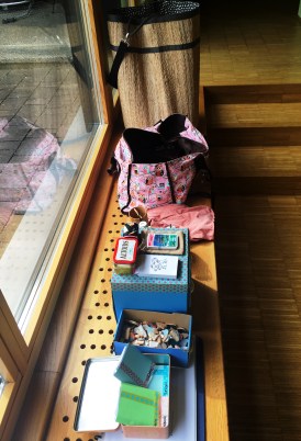 Wenn dann alle Kinder dran waren, räum ich alles wieder ein, roll die Matten auf, pack zusammen und mach mich schwer beladen auf den Heimweg –