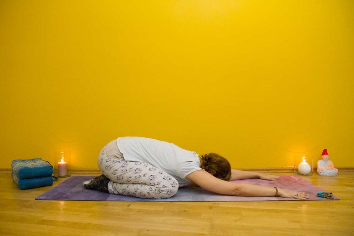 sanftes Dehnen der Beine, entspannende Vorbeugen und ausgedehntes Viparita Karani, bei dem ich die Beine nach oben an eine Wand lege, das wirkt wahre Wunder.